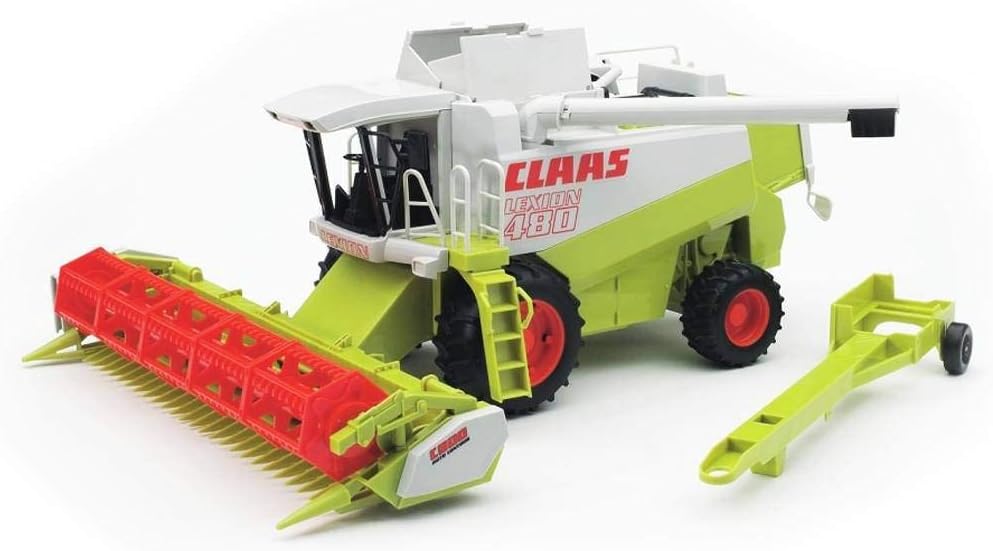 Bruder - Moissonneuse Claas Lexion 480 - Chariot permettant de transporter la coupe - Le tuyau a grain pivote - La trappe a grain ainsi que le déversoir a paille peuvent etre ouverts - Garçon - A partir de 3 ans - Livré a l'unité