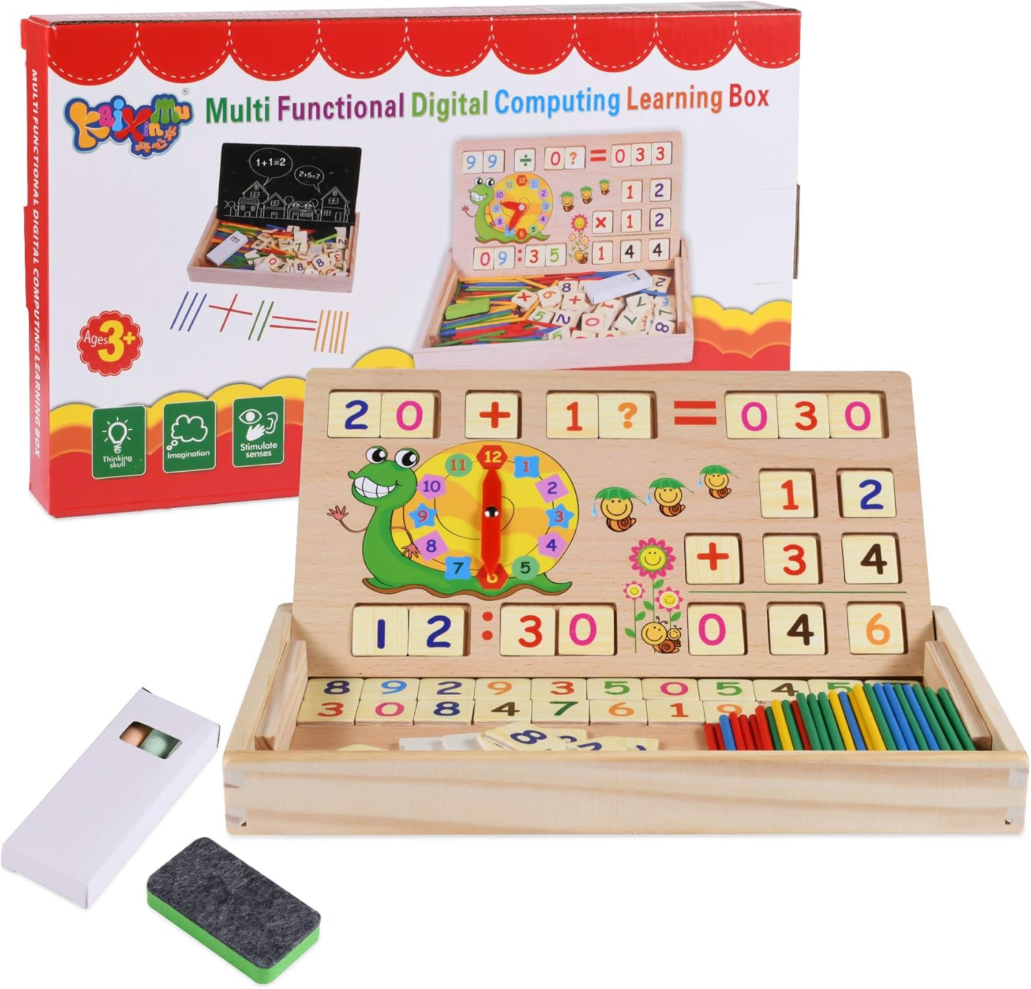 OMZGXGOD Montessori Boîte d'apprentissage de Math, Jouet Compter Horloge Chiffres, Jouets