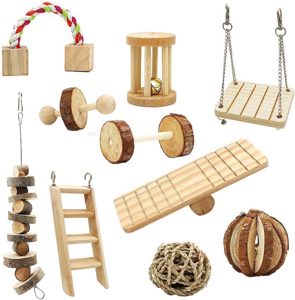 SODIAL Jouets à Macher de Hamster,Paquet de 10 Accessoires de Jouets de Chinchilla de Rats de Cochons Guinée Pin Bois Naturel Jouet Molaire pour Oiseaux Lapin Gerbilles