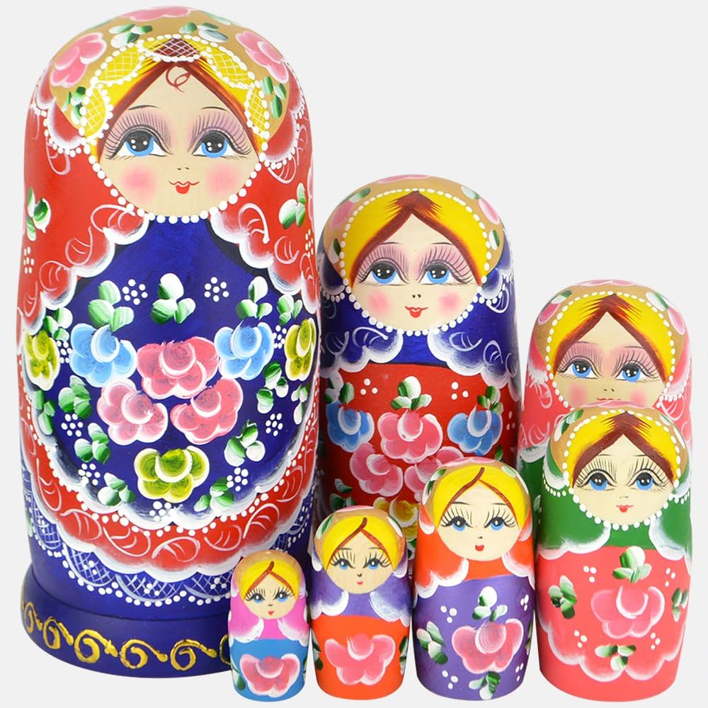 YAKELUS, Marque de poupées gigognes , 7 pièces, Série de Poupées Russes Matriochkas Poupee Russes 7 Pieces en Bois Peints? Fabrication Manuelle,, Cadeaux, Jouets